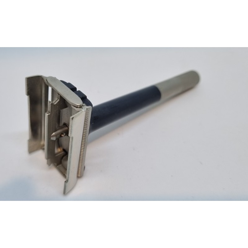 The razor comes in original plastic case and is unused - New Old Stock. It can use any modern DE blade.